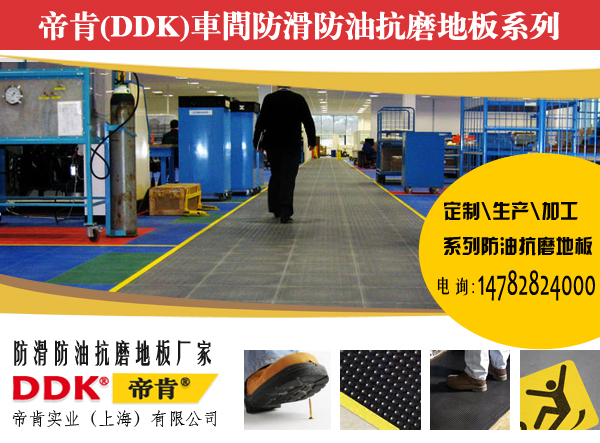 | 工業(yè)車間地面太油容易滑倒怎么辦?重油污區(qū)域用地墊——「帝肯(DDK)_8300_9979」這種工廠耐油地面墊子可以再短時間建立起一個快速有效的防油地面。 |