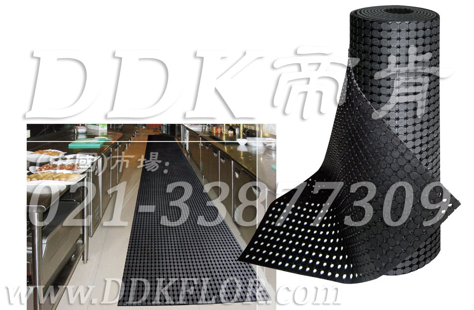 十字交叉坑道防滑表面和圓形排水孔雙效配合的后廚地面用防滑毯