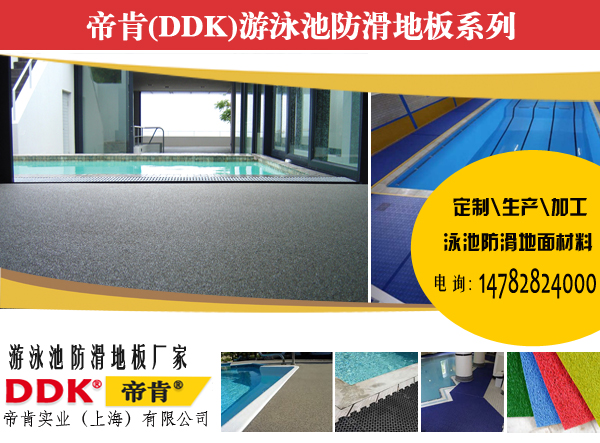| 游泳池防滑墊很難清理?那就試試直接鋪設游泳池地面防滑材料——帝肯(DDK)系列泳池耐磨耐用型防滑防腐蝕地板。泳池地面鋪什么不容易臟?帝肯(DDK)游泳池防滑地板具有良好的穩(wěn)定性、牢固性和耐磨度,耐酸堿腐蝕,耐紫外光,安裝方便,容易保養(yǎng)。耐腐蝕型泳池防滑地板的代表:帝肯(DDK)新型泳池防滑地板對化學藥品有很強的抵抗性,特別是氯水長時間浸泡后,不變形、不變色, |